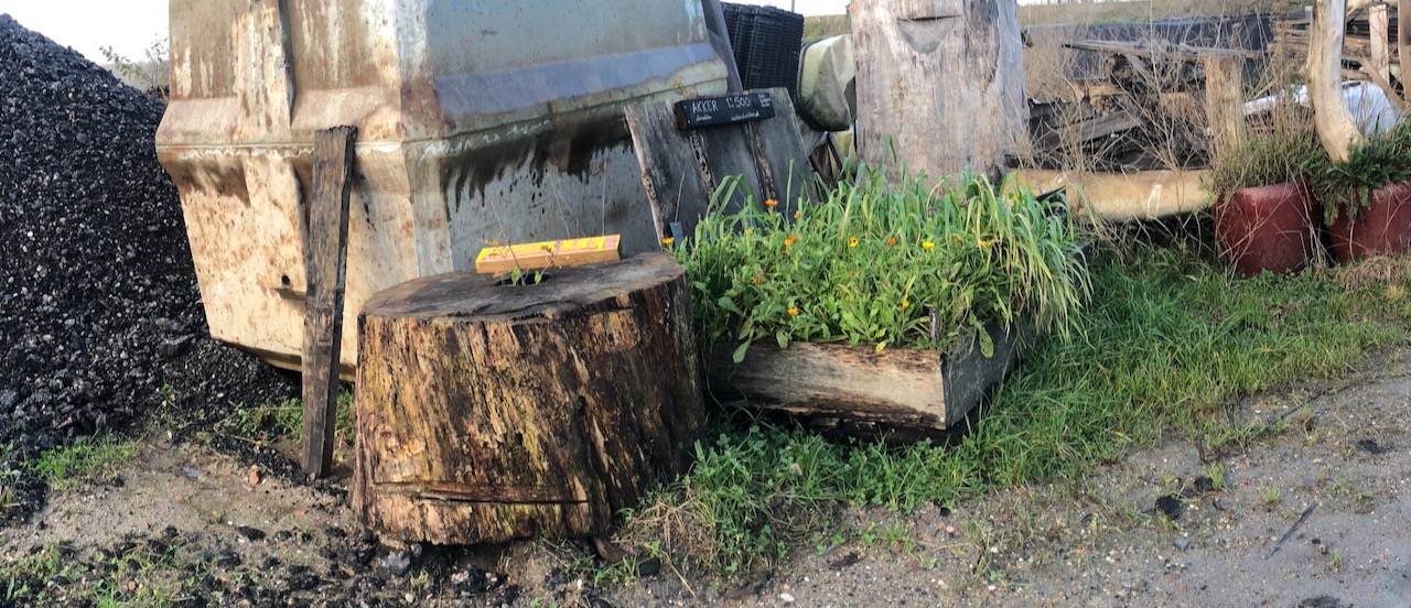 De wortels van de nieuwe eik zullen zich even tergend langzaam als het vergaan van het hout in de stam verspreiden. De hele stam zal verwortelen, op een manier die niet te voorspellen is.  Het wortelpakket zal zich natuurlijk ook in de grond gaan verspreiden. Er zal in de loop der jaren een ‘wortelstam’ ontstaan. Het laat zich niet voorspellen hoe dat eruit zal zien maar het zal het verbluffende aanpassingsvermogen van de natuur laten zien. Het heeft zich te verhouden tot het dubbele maaiveld dat ik schep. Hoe gaan maaiveld I & II in elkaar op?